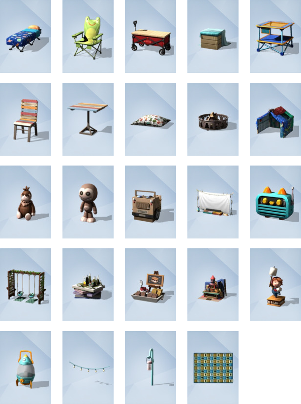There are a total of 24 Build & Buy items in The Sims 4 Little Campers Kit, perfect to create a campsite for kids in the safety of the backyard.